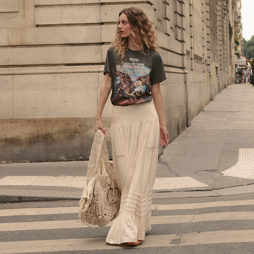 Take your style to the next level with our Elysian Biker Tee. Made from 100% organic cotton, this iconic Spell Tee exudes boldness and adventure. The charcoal color, custom print and biker-inspired design will add a touch of rock and roll glamour to any outfit. Embrace your inner rebel and make a statement with the Elysian Biker Tee.